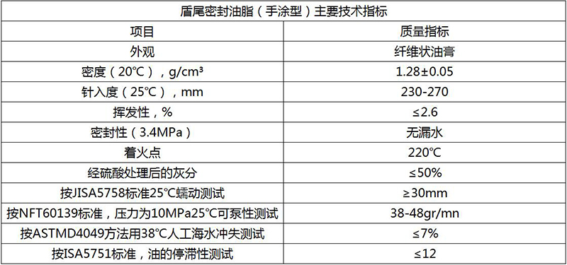 盾尾密封油脂(手涂型)產(chǎn)品性能: